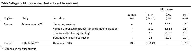 (15) presented the local DRL for a procedure that also represented the regional (European) DRL, because it brought together the major centers performing the EVAR procedure in the region.