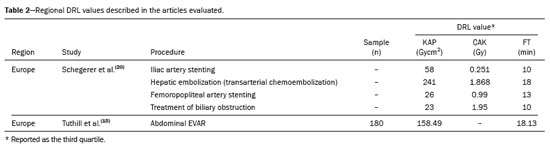OBJECTIVE: To comprehensively and impartially analyze the scientific evidence available for establishing diagnostic reference levels (DRLs) in interventional radiology.