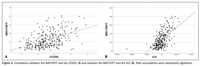 As depicted in Figure 5, there was a statistically significant correlation between the CCDHL and the MRIPDFF (r